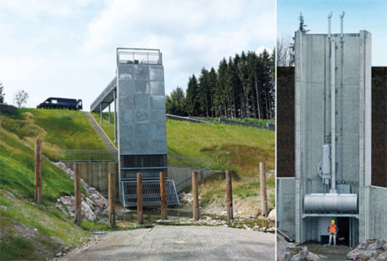 So können alle Stromversorgungseinrichtungen entfallen und teure Zuleitungen eingespart werden. Die Ingenieure der Steinhardt GmbH, einem weltweit agierenden Mittelständler aus Taunusstein, entwickelten speziell für diesen Zweck ein bis dato einmaliges Aggregat. Die patentierte Steinhardt-Hydro-Maxx-Abflusssteuerung für HRB wird in ein Dombauwerk eingehaust und vor oder in den Damm integriert. Der Wasserspiegel wird bei Hochwasser über Schwimmer auf einen massiven Kettenantrieb übertragen, der wiederum auf eine separate Steuereinheit einwirkt. So wird der Abfluss mithilfe von massiven Stauschützen automatisch und ohne Fremdenergie auf ein ungefährliches Maß geregelt. Eine Innovation für nachhaltigen Hochwasserrückhalt made in Germany.