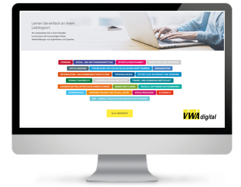 Die Lern-Plattform „VWA digital“ bietet hierbei für die öffentliche Verwaltung ein großes digitales Weiterbildungs-Angebot an. Die Plattform bündelt das digitale Angebot der baden-württembergischen Verwaltungs- und Wirtschafts-Akademien aus Stuttgart, Freiburg, Karlsruhe und Mannheim. Seit über 90 Jahren vermitteln diese aktuelles, hochwertiges und zukunftsweisendes Praxiswissen für Verwaltung und Wirtschaft.