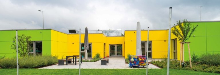 Mit einer Entscheidung für die Modulbauweise hat die Stadt Viernheim 2019 schon einmal gute Erfahrungen gemacht – so auch jetzt wieder bei der neuen Kindertagesstätte an der Lorscher Straße. Auch diesmal war für die Bauherrin die Schnelligkeit eines der wichtigsten Argumente „pro Modulbau“. Denn: Die Kinder wollte man nicht warten lassen. Den Klimaschutz aber ebenso wenig, und darum punktet dieser Neubau mit Nachhaltigkeit und besten Energiewerten.