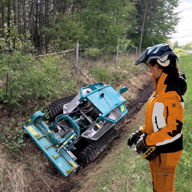Pfanzelt präsentiert die leistungsstarke Generation der Multifunktionsraupe Moritz mit 50/75 PS. Das Hydrauliksystem besteht aus drei getrennten Systemen für Fahr-, Arbeits- und Leistungshydraulik. Dies ermöglicht eine Drifteinstellung bei Mäharbeiten sowie eine Vorwahl der Endgeschwindigkeit. Die Arbeitshydraulik bietet sechs doppeltwirkende Funktionen. Die Leistungshydraulik ermöglicht bis zu 96 Liter/Minute bei 300 Bar. Ein unkomplizierter Transport mit dem Pkw-Anhänger ist problemlos möglich. Für unterschiedliche Einsatzgebiete und für Arbeiten am Hang können die Laufwerke hydraulisch um 200 Millimeter pro Seite verbreitert werden.