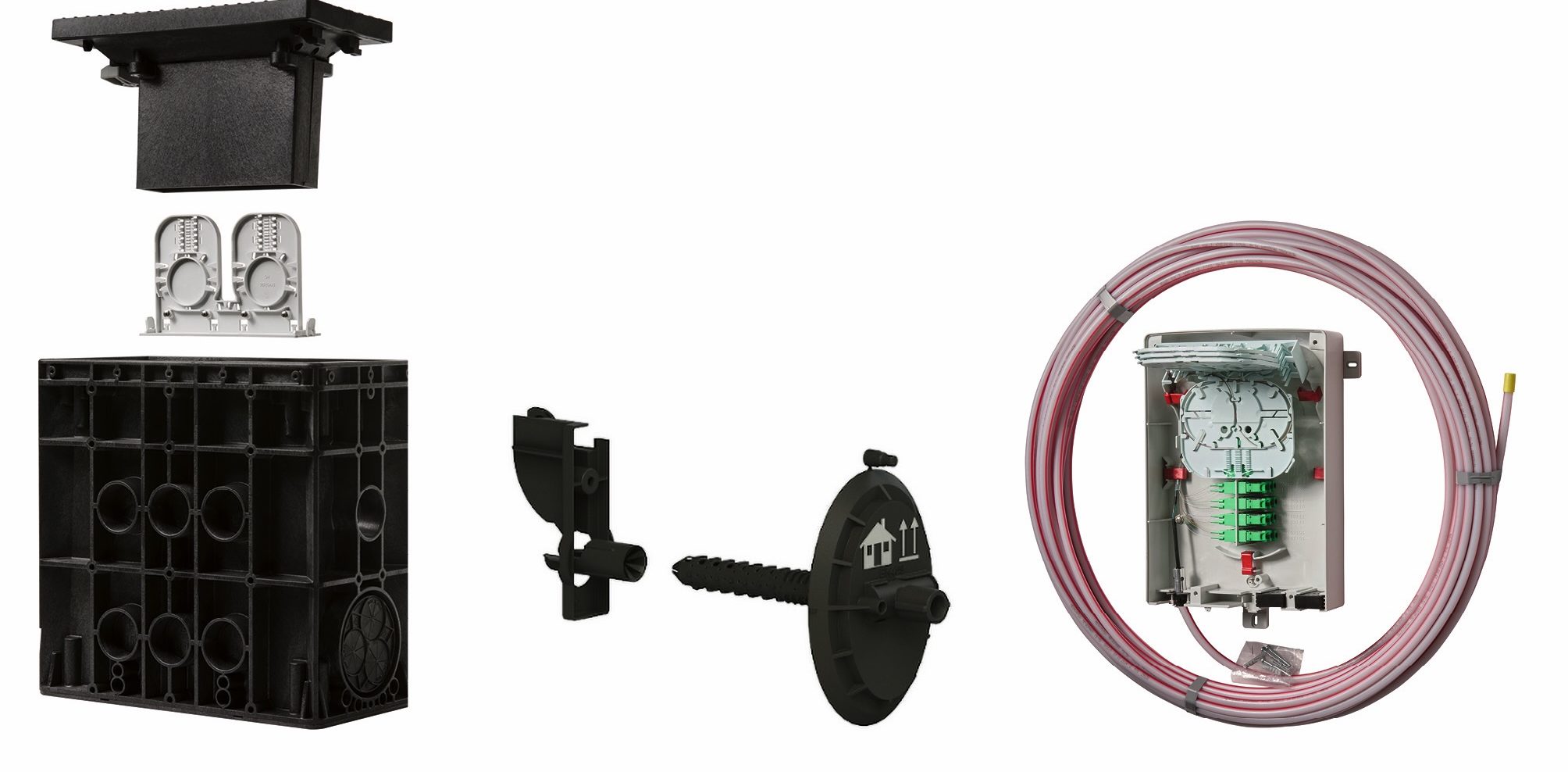 Bild: Intelligente Komplettlösung: Das Glasfaser-Übergabesystem von Langmatz umfasst Übergabeschacht, Hauseinführung und Abschlusspunkt. (Foto: Langmatz)