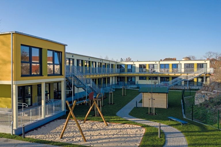 Wenn zwei etwas planen, freut sich der Dritte: So könnte die Überschrift über ein Bauvorhaben lauten, das im August 2019 im sächsischen Torgau fertiggestellt wurde. Die Bemühungen der Stadt Torgau, Ersatz für die sanierungsbedürftige alte Kita „Käthe Kollwitz“ zu schaffen, fand nach jahrelangem Ringen um die Finanzierung endlich ein gutes Ende. Nachdem die Wohnungsbaugesellschaft Torgauer Wohnstätten GmbH als Bauherrin der Kita gewonnen werden konnte, wird die Volkssolidarität als Trägerin den Neubau dauerhaft mieten und so den dringenden Bedarf der Stadt an Kinderbetreuungsplätzen auch für die kommenden 20 Jahre sichern. Oder, wie es Andreas Huth, Geschäftsführer der Torgauer Wohnstätten, treffend formuliert: „Die neue Kita stellt für alle Beteiligten eine ‚Win-win-Situation’ dar. Stadt, Bauherrin, Betreiber und nicht zuletzt die Nutzer sind glücklich.“