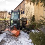 Effizienz auf der Fläche – das bedeutet neben der hohen Wendigkeit auch bestmöglich passende, kompakte Anbaugeräte, die zum Beispiel eine größere Menge an Streugut laden können. Zum Streuen wird bei Brundke & Thürmann ein Walzen-Kombi-Streuer angebaut, der die Vorteile eines Tellerstreuers mit den Vorteilen eines Walzenstreuers kombiniert. So lässt der Walzenstreuer das Streugut senkrecht auf einer präzisen Breite fallen, zum Beispiel optimal geeignet für Gehwege, während der Tellerstreuer das Streugut je nach Drehzahl flexibel in unterschiedlicher Breite verteilen kann.