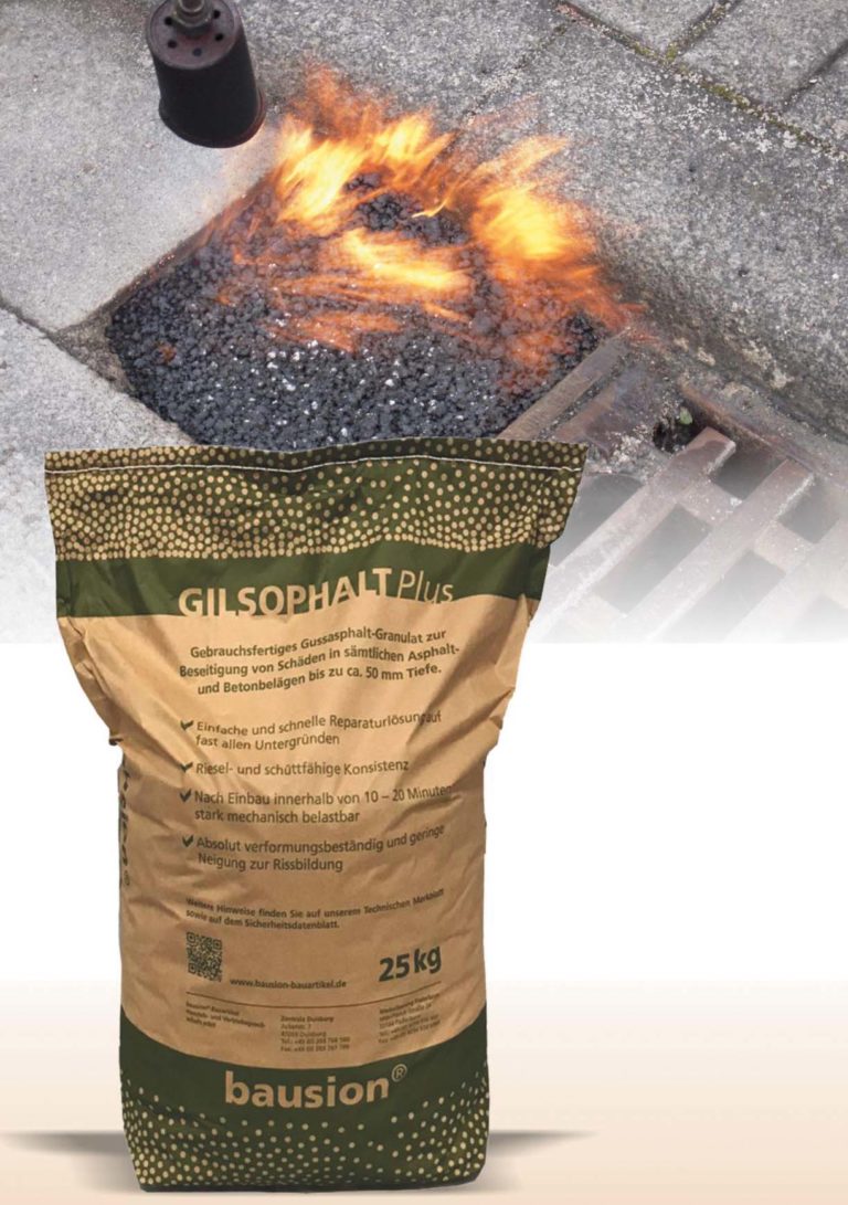 Reduzierung von Kunststoffabfällen rückt vermehrt ins Zentrum unternehmerischer Entscheidungen. Die Bausion-Gruppe, Duisburg, hat dies zum Anlass genommen, gemeinsam mit der Firma Steadymaxx ein Verfahren zu entwickeln, mit dem sich eine neues Gussasphalt-Granulat in umweltfreundliche Papiersäcke verpacken lässt (Foto). Das spart erhebliche Mengen an Plastikverpackung bei der Sanierung von Schäden auf Asphalt- und Betonbelägen im Straßenbau ein. Ausgangspunkt war die Entwicklung des neuen gebrauchsfertigen und lösungsmittelfreien Gussasphalt-Granulats GilsophaltT Plus, das heiß mittels Brenner eingebaut die gleichen Eigenschaften wie normaler Gussasphalt aufweist.