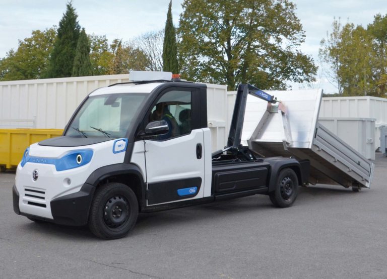 Die insbesondere für kommunale Einsätze interessante Kipper-Variante des Goupil G6 ist hier zusätzlich mit einer großen verschließbaren Box hinter der Fahrerkabine ausgestattet.