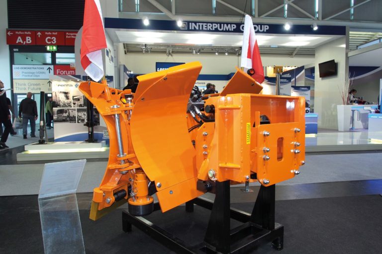Wenn Radlader zur Verfügung stehen, können diese mit einer Adapterplatte (Foto) jetzt auch Schneeräumschilder, Streugeräte und Kehrmaschinen aufnehmen. Der Hersteller von Winterdienstgeräten Wiedenmann aus Rammingen bei Ulm hat diese Lösung entwickelt. Das Zwischenstück verbindet die Radladerschwinge mit dem Anbaugerät, das ansonsten nur an Kompakttraktoren passt. Es schafft zudem einen Niveau- und Lastausgleich, sodass die Laderschwinge nicht auf das Schild drückt. Durch den integrierten Pendelausgleich werden Bodenunebenheiten ausgeglichen. Auch Streuer und Kehrer werden so angeschlossen. Ihr Antrieb erfolgt über die Bordelektronik der Radlader. Unterm Strich eine gute Sache, um die Maschinenauslastung zu optimieren. Wiedenmann bietet die Anbaukonsolen in Zusammenarbeit mit spezialisierten Händlern an. Für die verschiedenen Aufnahmen je nach Radladertyp gibt es entsprechende Anbauteile.