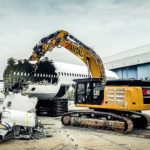 Sie musste die eingesetzte 5 Tonnen schwere Schrottschere zerschneiden und so den A319-100 Stück für Stück demontieren. Lediglich bei den Flügelanschlussstellen bildeten die Aluminiumteile ein dickes Verbindungsstück, in das sich die Schrottschere festbeißen musste, um Teile herauszureißen. „Da war dann etwas mehr Kraftaufwand erforderlich“, so der Bauleiter Julian Dins. Die Schere durchtrennte das Aluminium und verlud die Stücke in Container. Aus ihnen wird neues Aluminium gewonnen. „Das Flugzeug kann zu 100 Prozent recycelt werden. Wiederverwendet werden nicht nur Aluminium, sondern auch die