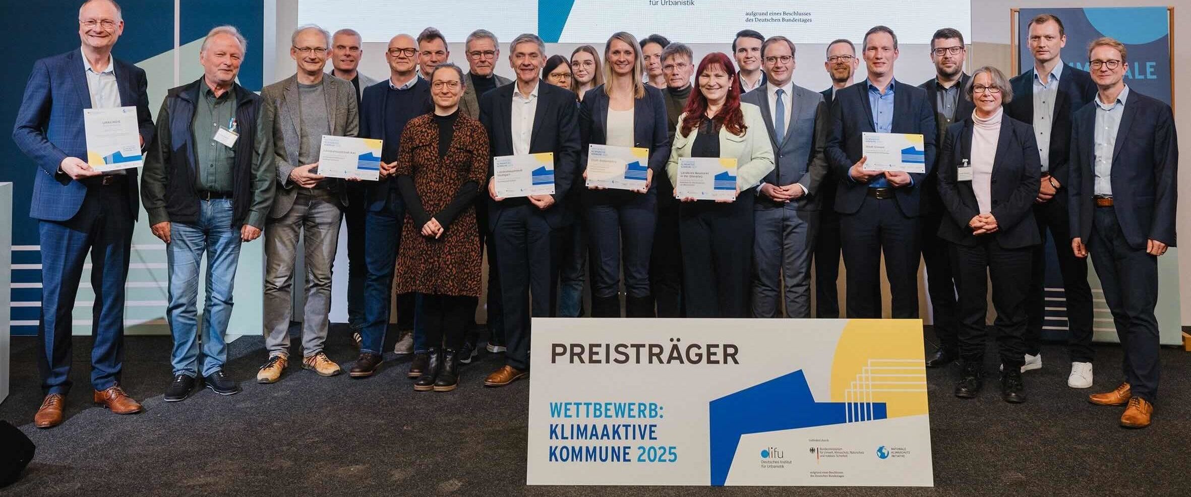 Dr. Jens Libbe, Kommissarischer Wissenschaftlicher Direktor, Deutsches Institut für Urbanistik, gratulierte ebenfalls und freute sich mit den Gewinnern: „Klimaschutz bedeutet weit mehr als das Einsparen von Treibhausgasemissionen. Es geht um einen umfassenden Transformationsprozess, der unsere Gesellschaft in nahezu allen Bereichen betrifft. Und jede Kommune, die klimaaktiv ist, trägt mit dazu bei, dass wir diese große Herausforderung unserer Zeit meistern – gemeinsam, engagiert und effektiv. Die Preisträger beim Wettbewerb ‚Klimaaktive Kommune 2025‘ sind hierfür ein gutes Beispiel.“