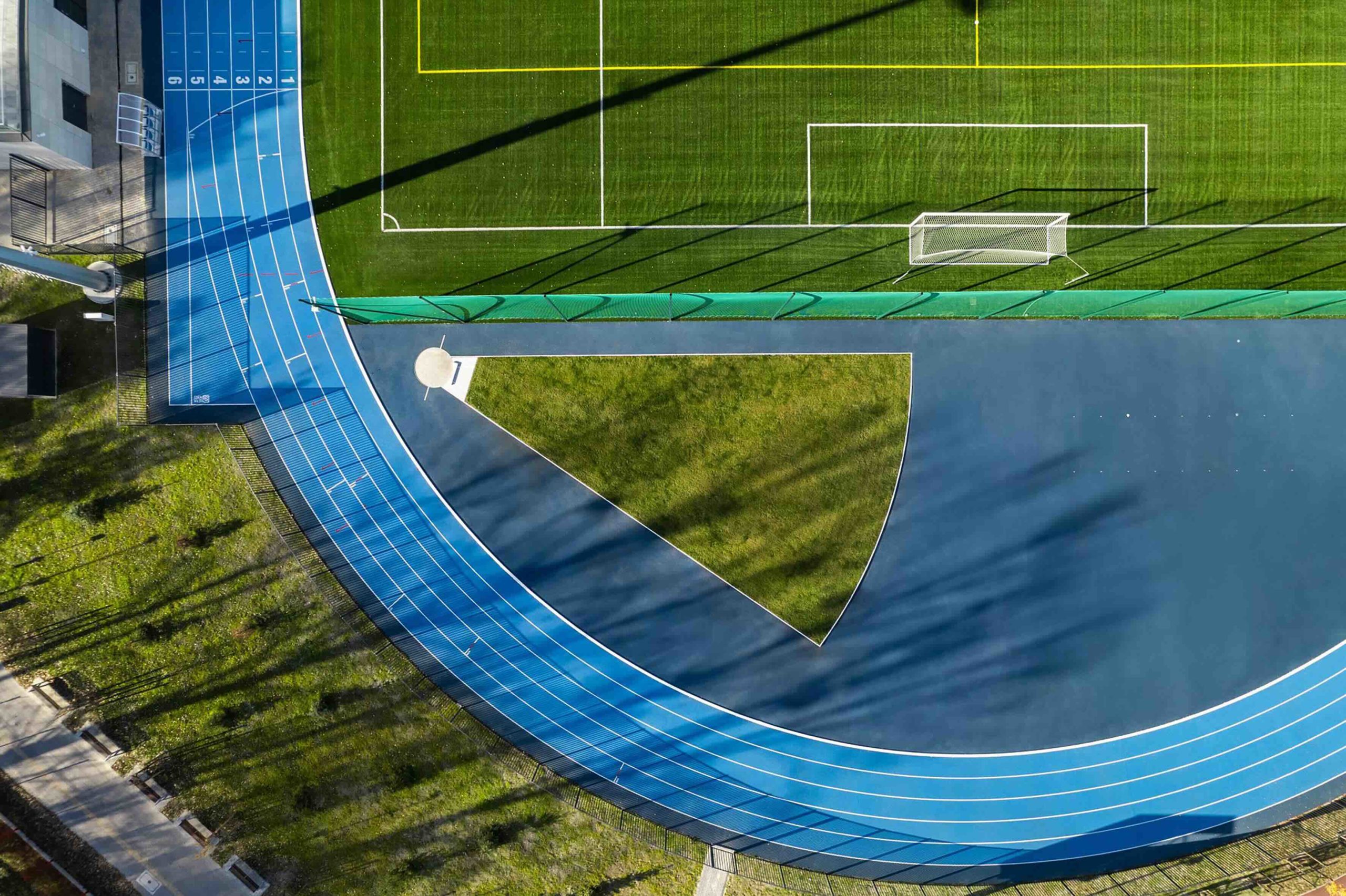 Diese Lösung überzeugt durch eine flächenbündige, nahezu unsichtbare Integration in die Laufbahn und sorgt gleichzeitig für eine zuverlässige Wasserableitung. Das Material ist UV- und frostbeständig, korrosionsbeständig und vollständig recycelbar – ein deutlicher Beitrag zu einer ressourcenschonenden Bauweise.